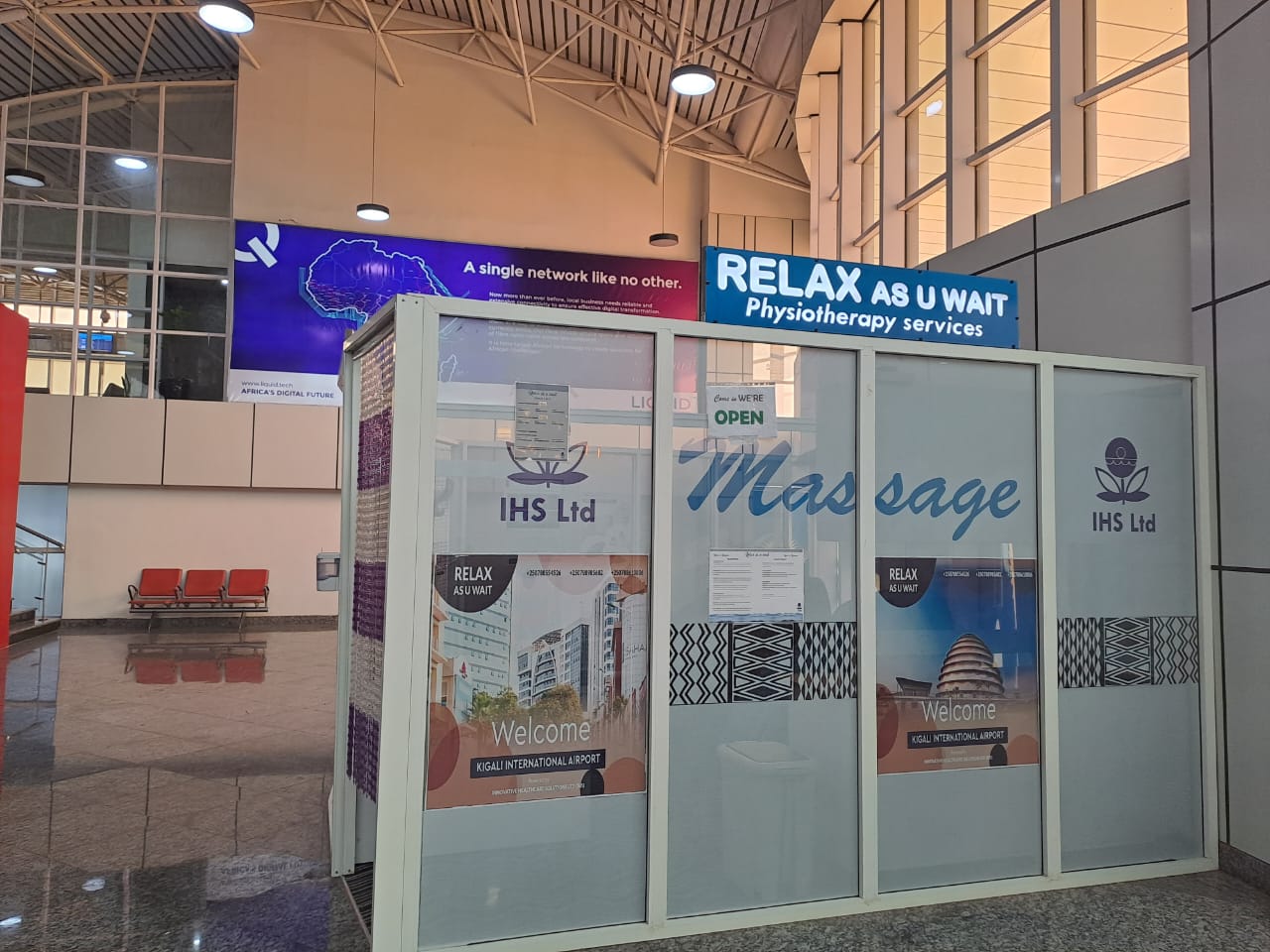 Going through Kigali International Airport soon? Relax as you wait for your next flight while receiving physiotherapy services inside the departure area. The facility is next to the Bourbon Coffee shop in the duty-free hall. In case of health emergencies,a team of health experts from king Faisal Hospital and Rwanda Military Hospital is availabble 24/7 to take care of one in need.